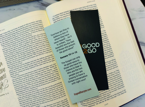 Good2Go bookmarks will be available at a table in the foyer for you to pick up and keep as a reminder to pray for the two people you intend to have gospel conversations with.